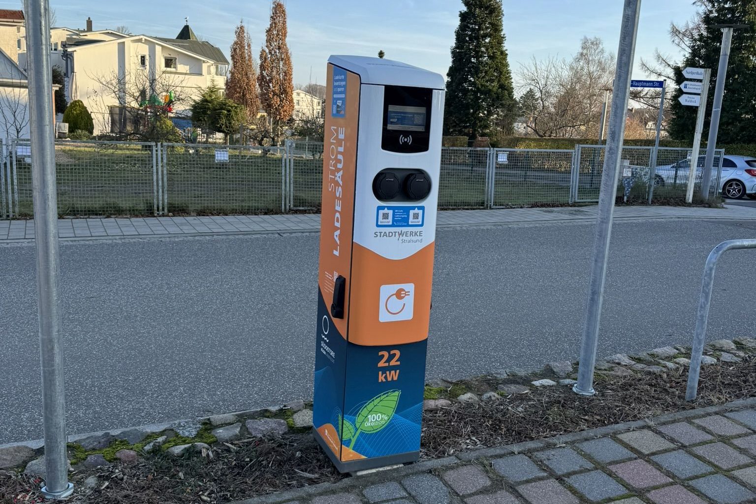 Seit Dezember 2025 haben Sie zudem die Möglichkeit, Ihr E-Auto an einem der vier Ladepunkte auf dem Parkplatz an der Nordperdhalle (Gerhart-Hauptmann-Straße) aufzuladen. Dort stehen Ihnen jeweils zwei 22 kwh und zwei 50 kwh Anschlüsse sowie eine Reparaturstation für Fahrräder zur Verfügung.