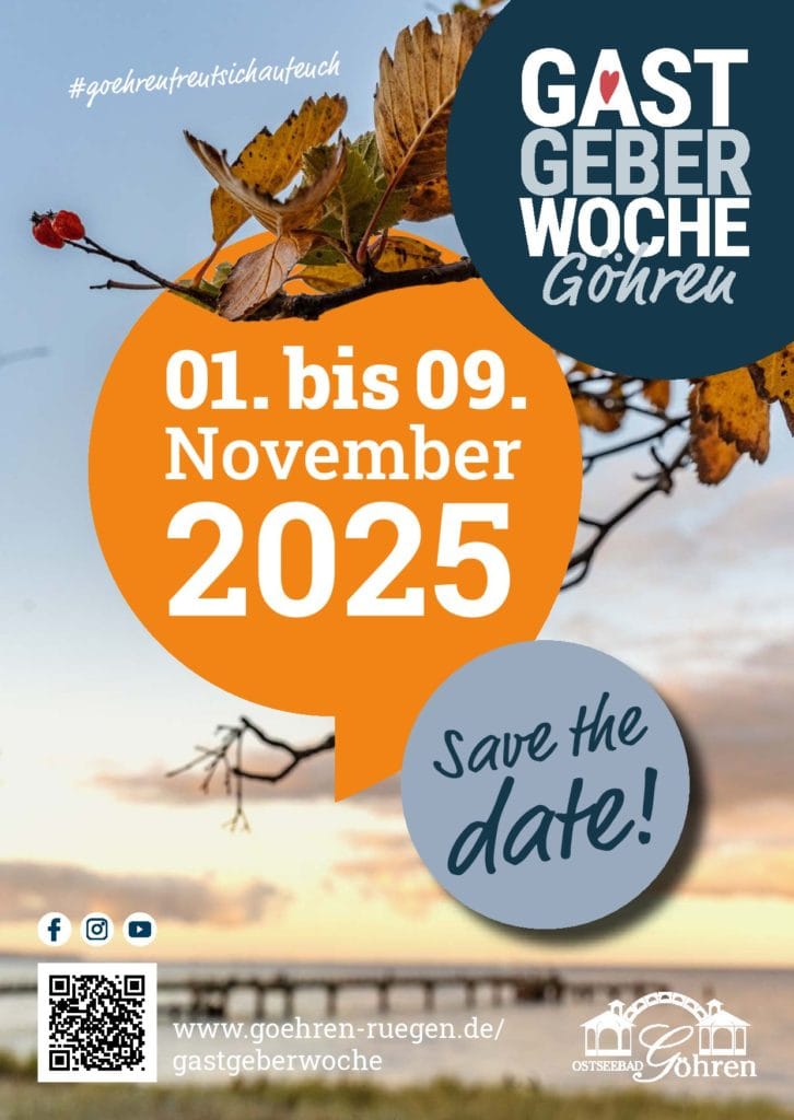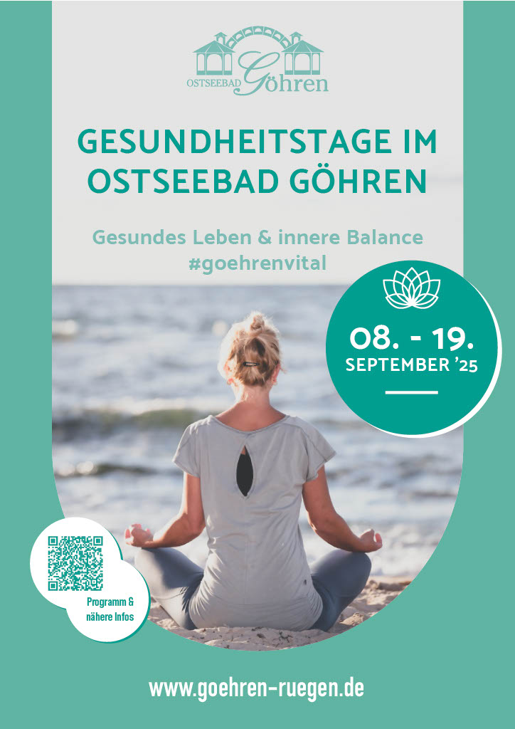 Bei den Gesundheitstagen könnt ihr nicht nur die Natur in vollen Zügen genießen, sondern auch wertvolle Anregungen für eine gesunde Lebensweise mitnehmen – das Ostseebad Göhren bietet dafür die perfekte Umgebung. Im Herbst erwartet euch dann bereits zum vierten Mal die Gastgeberwoche Göhren vom 1. bis 9. November 2025, für die aktuell ein abwechslungsreiches Programm vorbereitet wird. Freut euch schon jetzt auf spannende, informative und unterhaltsame Angebote. Und für alle, die frühzeitig planen möchten: Wir haben auch die ersten Highlights für 2026 für euch im Blick!